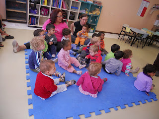As turmas de Berçário II e Maternal II têm participado de momentos de integração ao som de músicas. Planejados a partir das discussões do Projeto Músico da Família, as profissionais das turmas pensaram em diversos momentos que proorcionassem uma vivência musical, baseada no repertório da turma do Maternal II, cantado pelas crianças e regido pela educadora Rosângela e seu pandeiro. Num primeiro momento, Rosângela foi até a sala do Berçário II com seu pandeiro para que os bebês pudessem explorar o instrumento. No segundo momento, toda a turma do Maternal II foi até a sala do Berçário para que as crianças pudessem interagir. Para finalizar, os bebês foram até a sala do Maternal II, onde foram recepcionados pelas canções infantis que fazem parte do repertório desta turma. Por fim, puderam também tocar o pandeiro.Confira algumas imagens destes momentos.